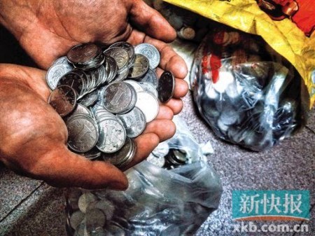阿文每天都在為如何處理倉庫的硬幣而發(fā)愁。 水桶中是一袋袋5角硬幣。 麻包袋裝著的是1元硬幣。 銀行說人工清點太費時;業(yè)內(nèi)人士建議可求助較大支行或人行 “家里有好幾百斤硬幣,銀行不給兌換,真不知道怎么辦了!鼻疤,新快報收到廣州白云區(qū)一農(nóng)貿(mào)市場一名檔主阿文(化名)的求助,他表示自己每天開檔收到的錢大多都是1元和5角的硬幣,然而,當(dāng)他打算將600多斤硬幣拿去銀行兌換時,所咨詢的銀行網(wǎng)點卻都不愿意接收,原因是人工清點效率低下,無法完成如此大數(shù)額的硬幣清點工作。 每天收到上千枚 一兩月就堆積如山 來自湖北的阿文和姐姐兩人在白云區(qū)同德圍橫滘市場經(jīng)營一個售賣一次性用品的檔口,據(jù)阿文介紹,市場上絕大部分的商戶都找他們購買一次性塑料袋,而且大多都是使用一元或5角的硬幣來買!斑@些硬幣基本上都是附近街坊買菜時給檔主的,檔主收了以后,就拿來我這里買袋子,因此基本上整個市場收的大部分硬幣,最終都是流到了我檔口這里!卑⑽母嬖V新快報記者,正因如此,他每天都能收到上千個硬幣,為此自己還特意在倉庫劃出了一個區(qū)域來臨時存放這些硬幣。 阿文說,他們一家經(jīng)營這個檔口已經(jīng)有六七年,最初的時候,他們會將這些硬幣打包裝成100元一袋,然后拿到超市去兌換。后來隨著收到的硬幣越來越多,數(shù)額超過了超市能夠兌換的范圍,所幸通過市場一個熟人介紹,地鐵站愿意幫他們兌換這些硬幣。 “我們估算硬幣總額都是用稱的,一般來說一萬元硬幣大概是120斤,每次我們都是用車?yán)?00斤硬幣去地鐵那里兌換,大概就是5萬塊左右,地鐵站有專門的硬幣清點機器,算出來的數(shù)字一般也八九不離十!卑⑽慕榻B說,他們過去幾年都是通過地鐵站將硬幣兌換成紙鈔,總算解決了硬幣在倉庫里堆積成山的難題。然而好景不長,今年9月份,他們原本打算如常地拉著硬幣到地鐵站兌換,結(jié)果卻被告知根據(jù)最新的文件要求,地鐵站只能夠和銀行直接進行硬幣兌換。無奈之下,阿文只能將硬幣拉回倉庫。 600多斤值好幾萬 花不出也不安全 前天上午,新快報記者來到阿文家中,看見他的床底下堆滿了一袋袋的5角硬幣,“估計至少也有2萬塊錢,”阿文說,相比一元硬幣,5角的硬幣在日常生活中更難用出去。隨后,記者跟隨阿文來到其倉庫內(nèi),倉庫的一角的10個麻包袋都裝著半袋以上的一元硬幣。 “現(xiàn)在至少有600多斤,好幾萬塊錢,放在這里也不安全啊,生怕被人知道了!卑⑽恼f,據(jù)報道,央行安排從今年起,在福建、江西全省和山東部分地市,逐步推動1元人民幣硬幣化,即1元人民幣單一投放1元硬幣,然而自己如今每天都在為這些硬幣發(fā)愁!安皇沼矌,我就不用做生意了,但收了又沒地方放又花不出去,我真的不知道該怎么辦了。”阿文無奈地對記者說。 那么,為何阿文不直接找銀行進行兌換呢?阿文表示,近年來,自己已致電過多個銀行網(wǎng)點,但無論是哪個網(wǎng)點都無一例外地表示沒有專門的硬幣清點機器,僅憑人工無法為其點算如此大數(shù)額的硬幣,因此無法為其辦理兌換或用硬幣存款的業(yè)務(wù)!罢伊瞬幌8家銀行了,沒有一家是肯收的!卑⑽膰@息道。 銀行:人工點算太費時,“有心無力” 前日下午,新快報記者就此事走訪了多家銀行網(wǎng)點,但不論是哪家銀行,從工作人員處得到的回復(fù)基本上都是和阿文所遇到的情況一致。一名姓李的銀行大堂經(jīng)理對記者直言“有心無力”,他表示,如果只是少數(shù)額的硬幣兌換業(yè)務(wù),可以直接取號在業(yè)務(wù)窗口辦理,但如果是數(shù)百或上千元的兌換則無法辦理,原因是絕大部分銀行網(wǎng)點都只能靠人工來點算硬幣,工作效率非常低。 “我們在清點的時候,都是要人工來清點,邊清點邊整理串好,非常耗時,一名工作人員點算上千元的硬幣就得一整天,而且這個窗口全天都不能辦理別的業(yè)務(wù)了。而這幾百斤的重量,負(fù)責(zé)運鈔的人也不愿意搬走!崩罱(jīng)理表示,該網(wǎng)點并不會拒絕用戶兌換硬幣或用硬幣存款的要求,但基本上每天只能兌換一兩百元的硬幣。而旁邊另外一間銀行的工作人員則表示,每天只能提供15分鐘的兌換業(yè)務(wù),15分鐘內(nèi)能點算多少就兌換多少。記者隨后致電了多家銀行的官方客服,但均未能給出一個可行解決方案。 原則上銀行不能拒絕 但確實存在實際困難 對于阿文所面臨的困局,一名銀行業(yè)內(nèi)人士在接受新快報記者采訪時表示,原則上,銀行網(wǎng)點絕不能拒絕兌換硬幣或用硬幣來存款的業(yè)務(wù)申請。然而,目前絕大部分銀行網(wǎng)點確實只能通過人工點算來數(shù)硬幣,由于很多硬幣很難通過肉眼來分辨真?zhèn)?如果一旦收到了假幣,還要從銀行員工的工資里邊扣除,因此效率非常低,“如果要點清楚600多斤硬幣,至少需要好幾天的加班加點,而且負(fù)責(zé)清點的支行那幾天基本就不用辦理其它業(yè)務(wù)了”。 該業(yè)內(nèi)人士表示,銀行如果要進行硬幣點算,一般會用到硬幣清分機,這是一種集檢偽、清分、計數(shù)為一體的分揀機,清分過程中能計算出總金額、總數(shù)量、異幣數(shù)量,以及每一種硬幣的數(shù)量、金額,然而,這種機器由于成本比較高,而且平日很少會用到,“因此可能每個銀行在每個城市都只設(shè)置