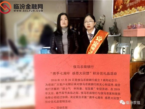臨汾金融網(wǎng)訊 侯馬農(nóng)商行開展“攜手七周年,感恩大回饋”積分兌禮品活動(dòng),地毯式掃街掃鋪進(jìn)行宣講。