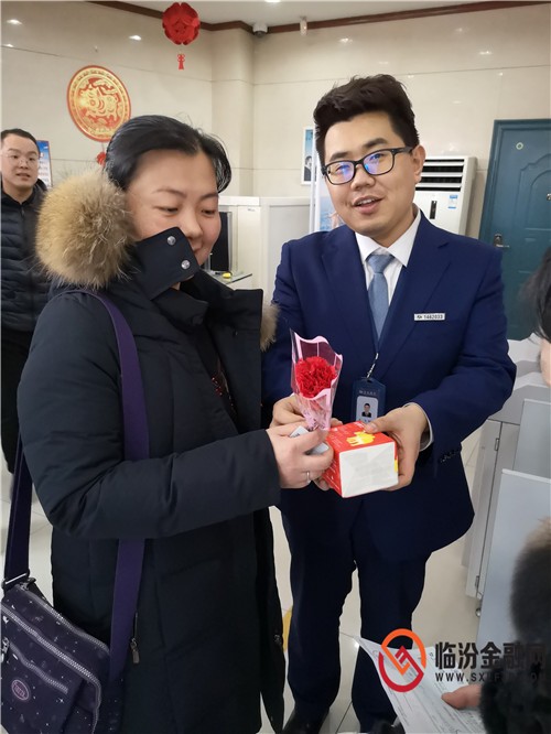 臨汾金融網(wǎng)訊(趙瑞)每年度的“情人節(jié)”讓每一份投入,變成你我共同種下一顆愛的種子,交通銀行臨汾鼓樓廣場(chǎng)用常情久伴的服務(wù)做您最好的情話。迎著紛飛的白雪,廳堂內(nèi)一派愛意融融,工作人員為每位光臨的客戶送上情人節(jié)的問候和關(guān)懷------玫瑰香芬及抽獎(jiǎng)禮品。