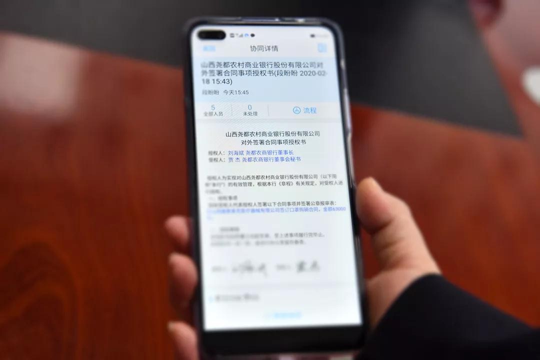 臨汾金融網(wǎng)訊(段盼盼)“快看!我剛剛在手機(jī)OA上提交的專項合同授權(quán)書不到一分鐘就全簽字了!給前臺柜員購置的防護(hù)口罩可以提早到位了!”2月18日下午,堯都農(nóng)商銀行辦公室內(nèi)一片贊嘆之聲,大家紛紛試用手機(jī)OA上的各種審批表單,領(lǐng)用辦公用品的、費(fèi)用報銷審批的、文件辦理的……