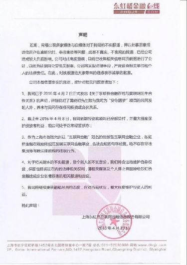 【TechWeb報道】4月11日消息,針對互聯(lián)網(wǎng)金融平臺東融在線被曝逾期兌付、非法集資等問題,東融在線昨日發(fā)布聲明稱,此類報道“不真實、不客觀”,“截至2016年4月8日,我司到期投資款項均已全部兌付,并最大程度保護(hù)投資者利益,現(xiàn)公司處于正常經(jīng)營狀態(tài)。” 據(jù)《每日經(jīng)濟(jì)新聞》報道,有投資者反映,原本4月2日~7日到期的資金已于昨日(4月10日)兌付,但4月8日以及之后到期的資金仍未兌付。 “周一應(yīng)該過去盯著,沒人去的話估計又拖了,周五是投資人現(xiàn)場盯著的,才打款的!币晃煌顿Y者表示。據(jù)悉,上周五上海當(dāng)?shù)匾约安糠纸愕目蛻羧チ嗽摴究偛,要求返還已經(jīng)逾期的本金。 東融在線在聲明中還澄清了演員“黃曉明與公司沒有任何投資或合伙關(guān)系”,只是該公司“貸你圓夢”項目的共同發(fā)起人。日前,因東融在線事件,黃曉明微博淪為投資者討債的集合地。 近日,多家互聯(lián)網(wǎng)金融平臺陷入兌付危機(jī)。先是金鹿財行、當(dāng)天財富被曝險兌付危機(jī),兩個平臺的“戰(zhàn)略合作伙伴”上海快鹿投資集團(tuán),“緊急”調(diào)整管理層,并宣布到2018年3月底前兌付完畢。 隨后有消息傳出,東虹橋在線、趣豆理財、魔環(huán)電影等與快鹿集團(tuán)“關(guān)聯(lián)”的多個互聯(lián)網(wǎng)金融平臺,也開始出現(xiàn)逾期。 |