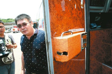 臺灣游覽車著火奪走26條性命,7月20日,臺灣檢方勘驗出事大巴,要求游覽車業(yè)者找一輛同款車,并現(xiàn)場示范開啟逃生門,結(jié)果令人驚愕…… 據(jù)臺灣聯(lián)合報7月21日報道,事故后,車上乘客無一逃出是各界關(guān)注的最大疑點。臺灣檢方認(rèn)為,這可能跟逃生門裝了暗鎖有關(guān)系。當(dāng)日第一時間參與救援的警員也證實說,當(dāng)時“從外面拉不開安全門”。 昨日,檢方再次勘驗著火大巴。游覽車公司總經(jīng)理林靖樺以同款車介紹逃生裝置,他信心滿滿地說“后面的安全門沒問題”,但當(dāng)他拉門把要推開門時,雖很用力推卻打不開。林一度還大喊“外面的人不要抓手把”,外面的人回說“沒人抓手把”。 游覽車業(yè)者示范開安全門 檢查小組發(fā)現(xiàn)事故車輛逃生門有類似小客車兒童座安全鎖的設(shè)計,啟動開關(guān)位于司機駕駛座下方。安全門鎖孔里,有小橫桿控制住的暗鎖,有人從外面拉,也打不開。 臺灣檢方表示,游覽車上不應(yīng)設(shè)這種暗鎖,如確認(rèn)與乘客死亡有關(guān),業(yè)者將難逃法律責(zé)任。 但游覽車業(yè)主辯稱“一切合法”。臺灣資深大客車司機透露,裝暗鎖是業(yè)界“不能說的秘密”,按法令規(guī)定安全門不得上鎖,但游覽車常發(fā)生行竊,為防小偷不得不在安全門上加一道鎖。 安全門內(nèi)的暗鎖 但臺灣公路局有規(guī)定,加裝安全門暗鎖被路檢查出,最終可罰9萬元并吊銷執(zhí)照,如果是車行要求裝設(shè),可廢止汽車運輸業(yè)營業(yè)執(zhí)照及吊銷全部營業(yè)車輛牌照。為避免被罰,游覽車公司想到“化明為暗”,偷偷在安全門里裝暗鎖。 |